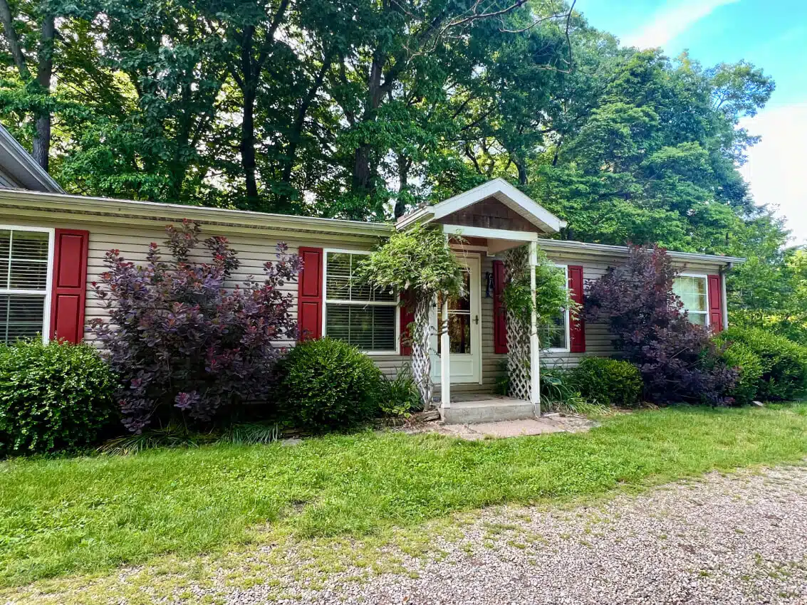 The cottage is located next door to Creekside Cottage. It is 1,600 sq feet of space and is filled with antique charm. The house offers 3 bedrooms (sleeps 6 with queen master, full, and twin with twin trundle) and 2 full baths, with Jacuzzi tub in master and shower in hall bath. The cottage also features a large, screened porch overlooking the woods/ravine/creek with table and chairs. There is also a gas BBQ grill and private fire pit. Guests may also enjoy the hiking trails through the woods, use our kayaks on the river (direct access), play on our large play set (featuring swings, a slide, and climbing walls), borrow bikes to ride through the area, or play yard games including badminton, bags, or bocce.